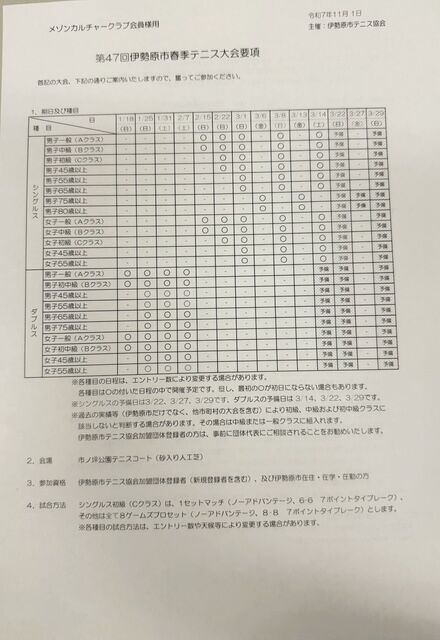 2025年11月06日 伊勢原市春季テニス大会要項 おはようございます!!廣田です(^^)/伊勢原市春季テニス大会要項がでましたので、お知らせします。試合にぜひ挑戦してみましょう!! カテゴリなしの他の記事